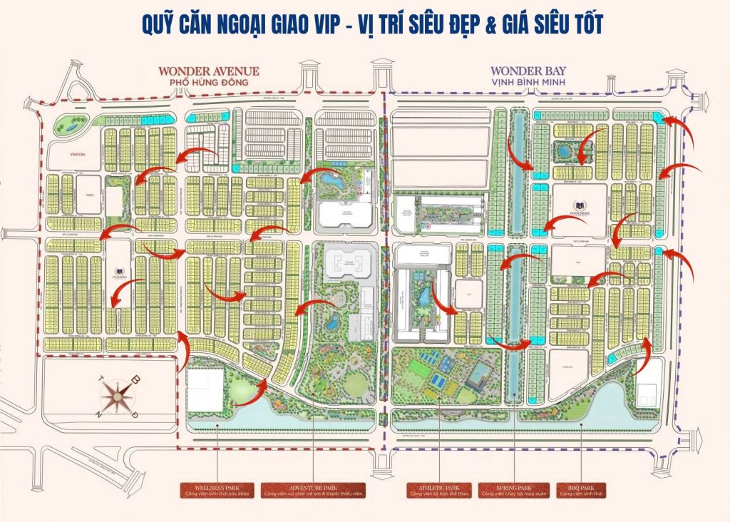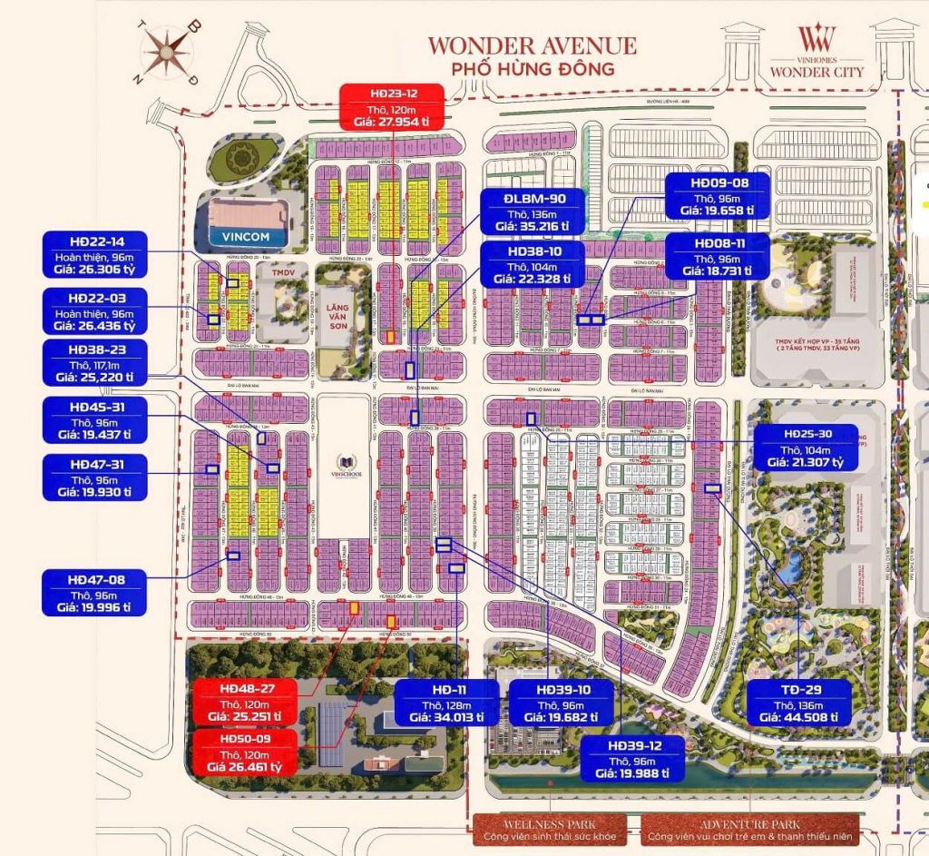 Phân khu Hừng Đông được coi là khu vực sôi động nhất trong dự án Vinhomes Wonder City, nơi tập trung phần lớn các sản phẩm nhà liền kề và shophouse, lý tưởng cho cư dân có nhu cầu an cư lẫn kinh doanh.